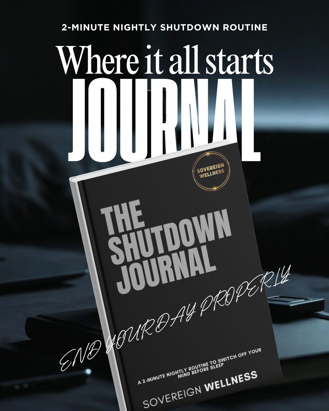 The Shutdown Journal is a simple 2-minute nightly routine designed to clear your mind and help you fall asleep faster. Currently available on Amazon.