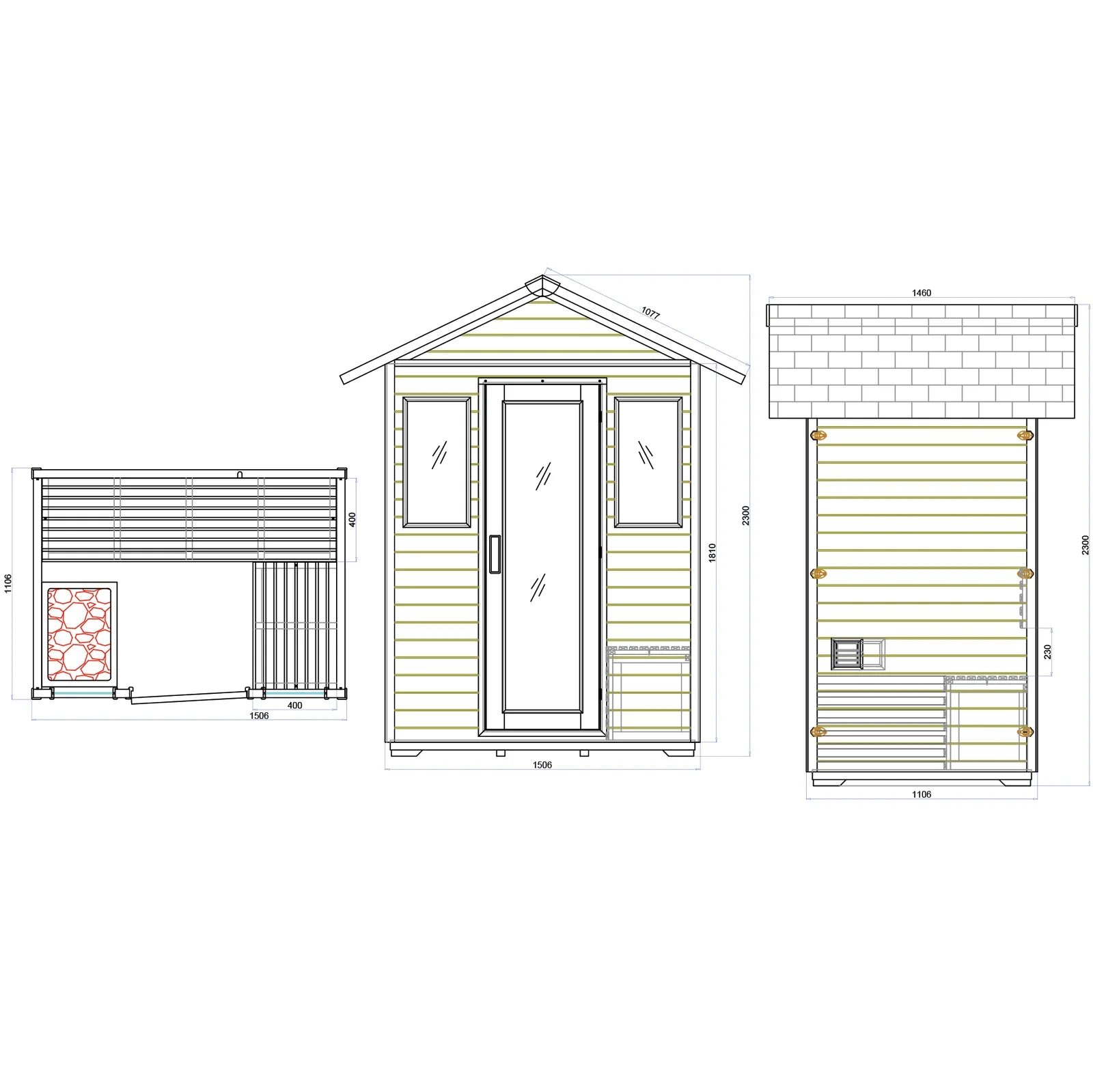 CenturaHeat 3 Person Traditional Outdoor Sauna Room